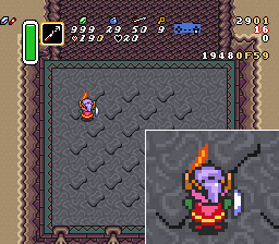 The exploding wall is triggered by stepping on the top-most "cracked" tile in the first column. Link's horizontal coordinate must be between 1939 and 1948 to trigger the switch. The above image shows Link standing on the lower-right corner of the switch trigger for reference.